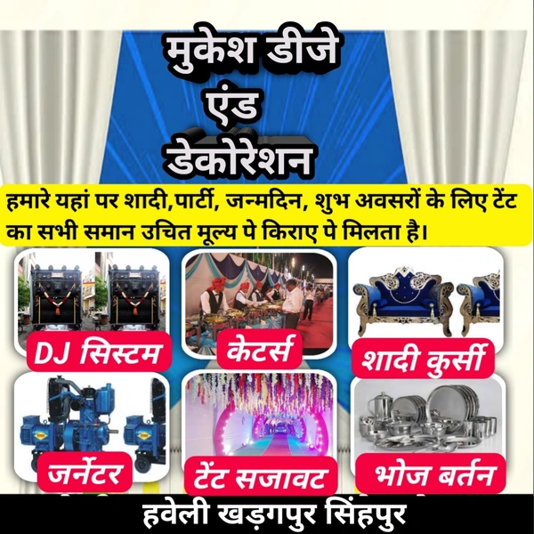 Mukesh Tent House And Decertion के लिए सम्पर्क करे या ऑडर दे 📞~9934753288
