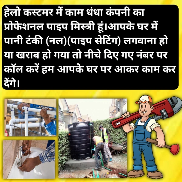 पाइप मिस्त्री पलंबर (Plumber) के लिए कॉल करे 📞~6202565990🛡️Verrified From Kaam Dhandha